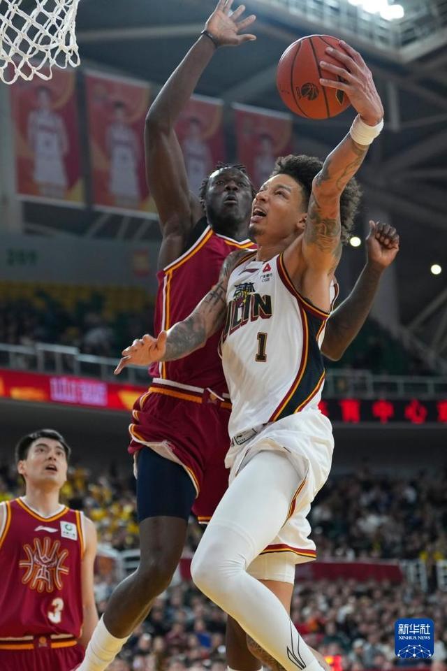3月11日,吉林长白山恩都里队球员摩尔(右二)在比赛中。新华社记者 杨晨光 摄